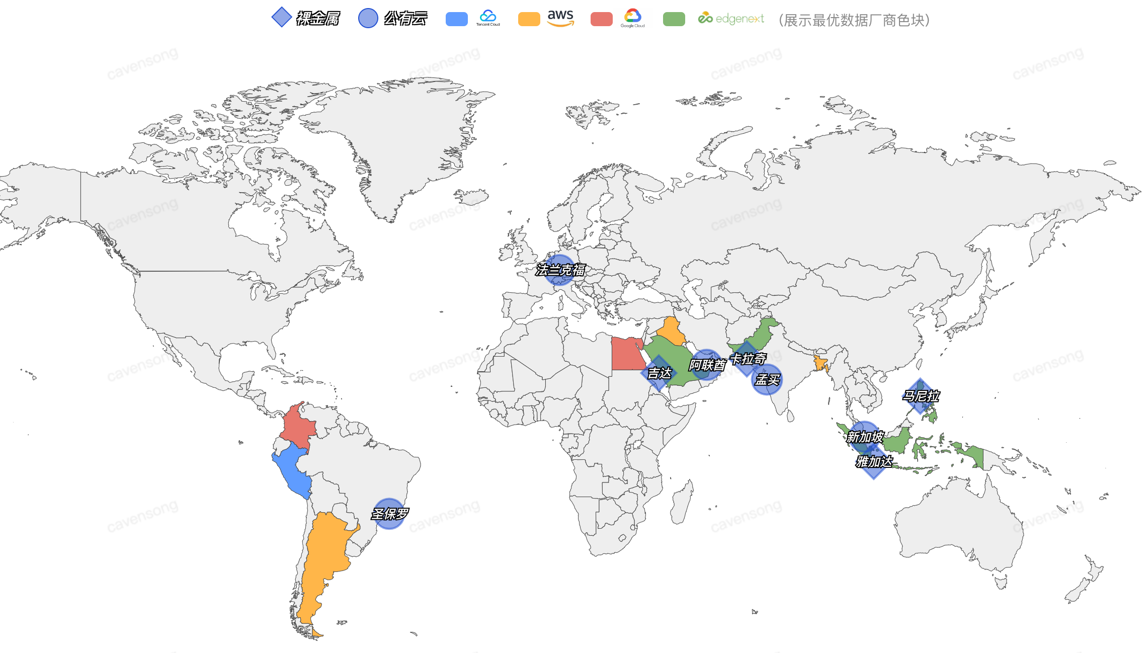 Combining the regular monitoring results of the GINTS network speed testing system, and extracting the network speed testing data from the past six months, the data situation of the three major public clouds + OIT bare-metal resources covering the aforementioned countries is as follows: