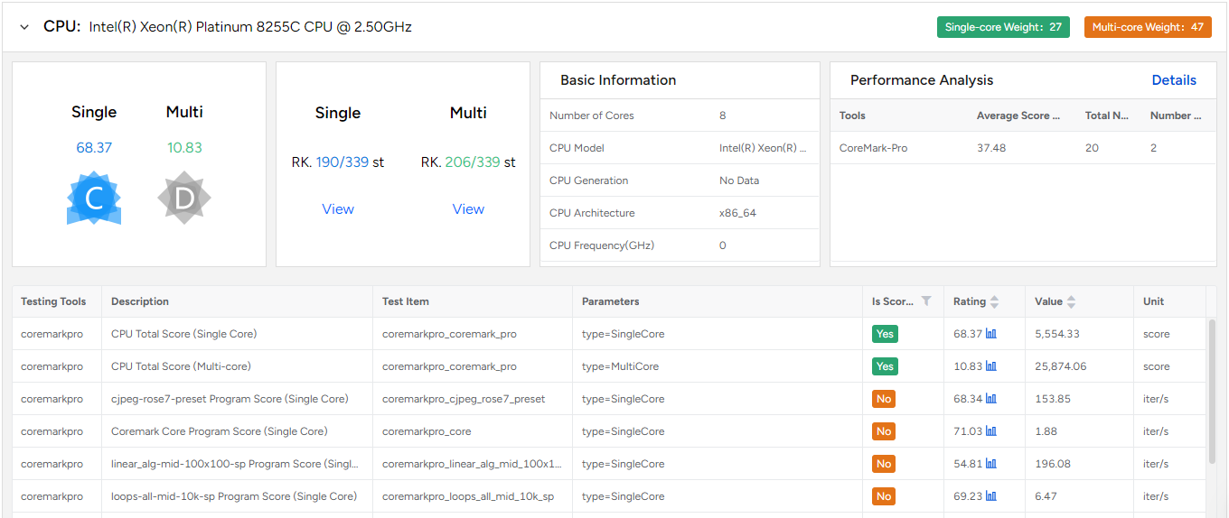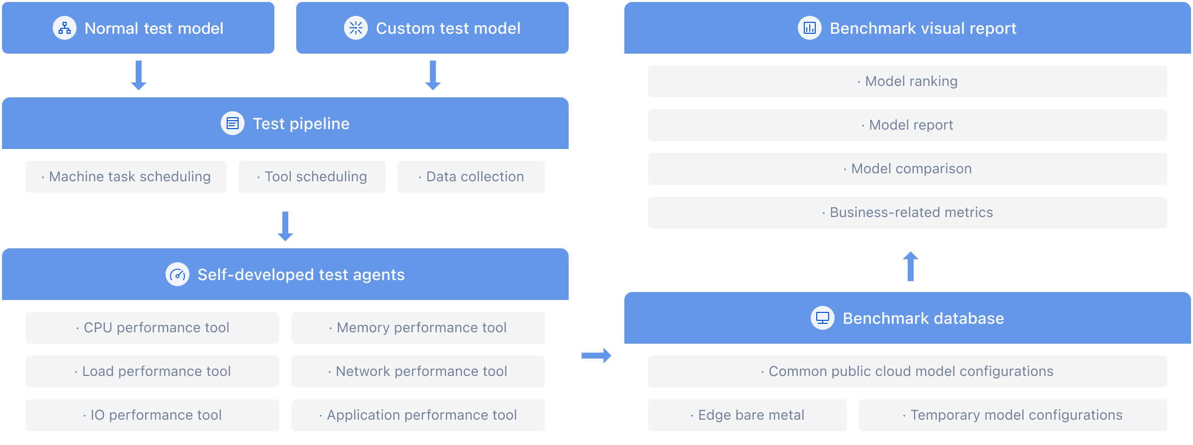A performance evaluation and analysis platform for aircraft models based on multiple open-source and business customized testing tools. The platform establishes rating indicators based on industry standards, evaluates common models and disks from multiple cloud vendors, and provides users with selection references.