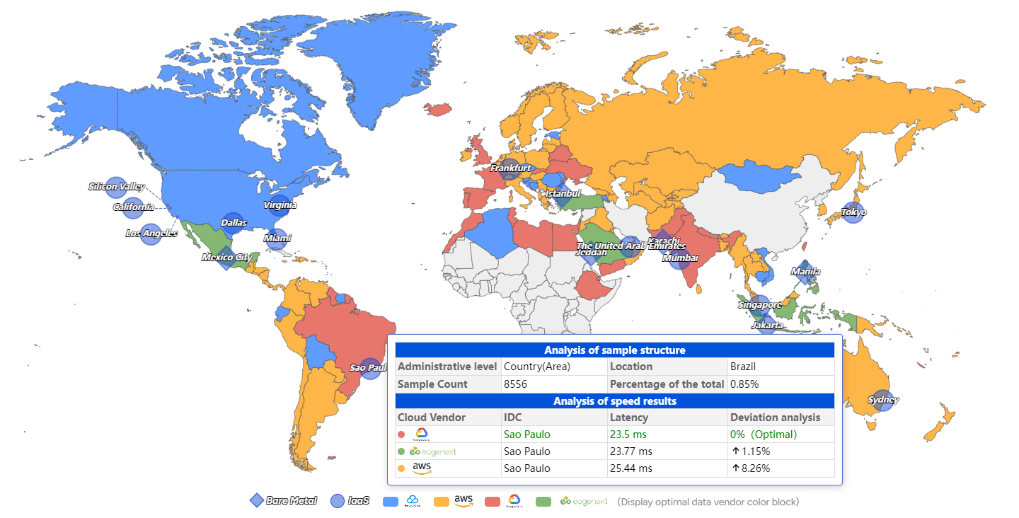 The platform has test points in the regional server rooms of dozens of cloud vendors around the world, and network data is collected from nearly 40,000 carriers in more than 100 countries, providing rich network data support for business.