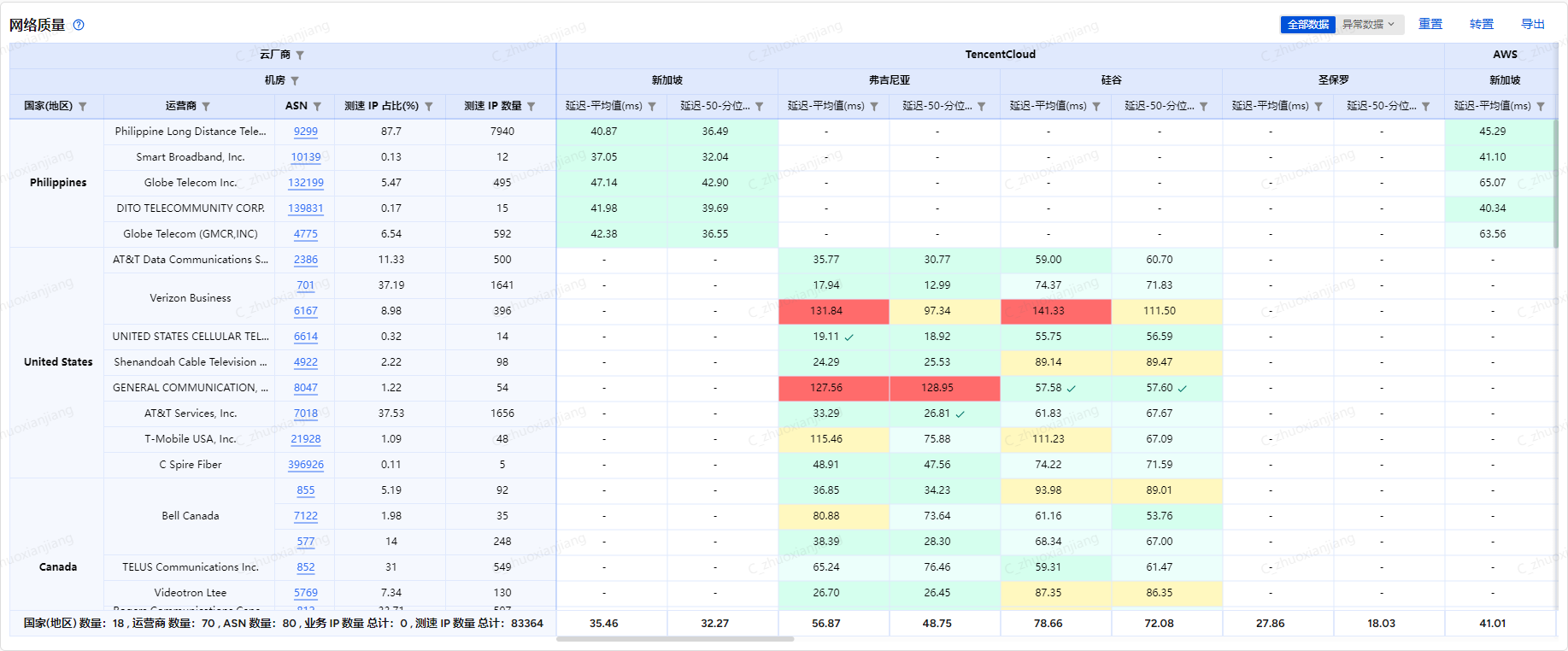 In response to the quality data report obtained from network probing, the platform extracts various data that can be tuned by the cloud factory, and the GINTS team maintains long-term cooperation with the network teams of major cloud factories, so that network tuning processing can be carried out quickly.